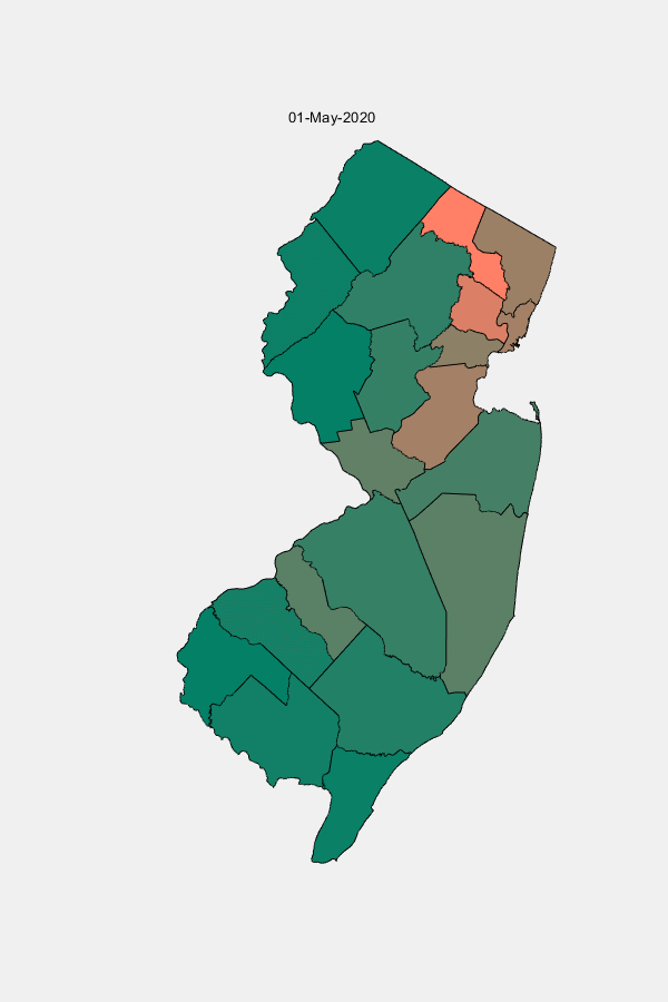 - Spatial simulation of COVID infection (daily new cases) in NJ Counties